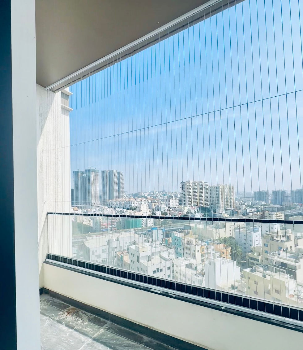 Balcony Invisible Grilles provide a perfect balance of safety and style, especially for high-rise buildings and homes with open balconies. Designed using high-strength stainless steel cables, they protect against accidental falls while maintaining an open and unobstructed view of your surroundings.